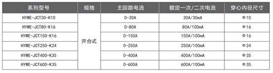 HYWE-JCT系列開合式互感器,可在不停電、不斷線的狀態下快速安裝、拆卸,操作簡便。額定一次電流提供多種規格可選,滿足各類工程現場需要。